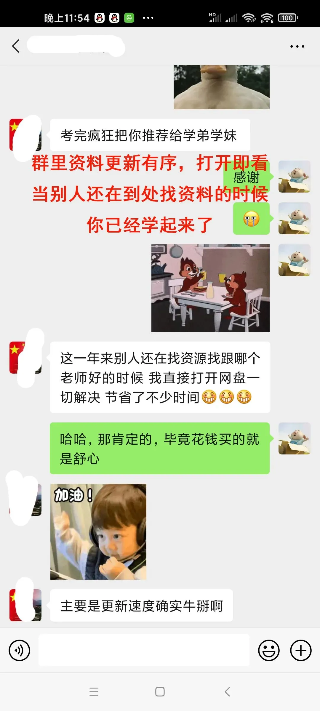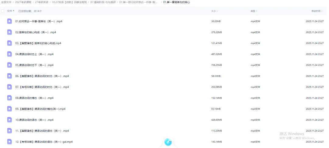 百度云群里面资料从第一节按顺序排列,包括网课视频+上课讲义电子版+纸质书扫描电子版,高清无水印。比如田静的语法课在百度云群组中是下面的样子: