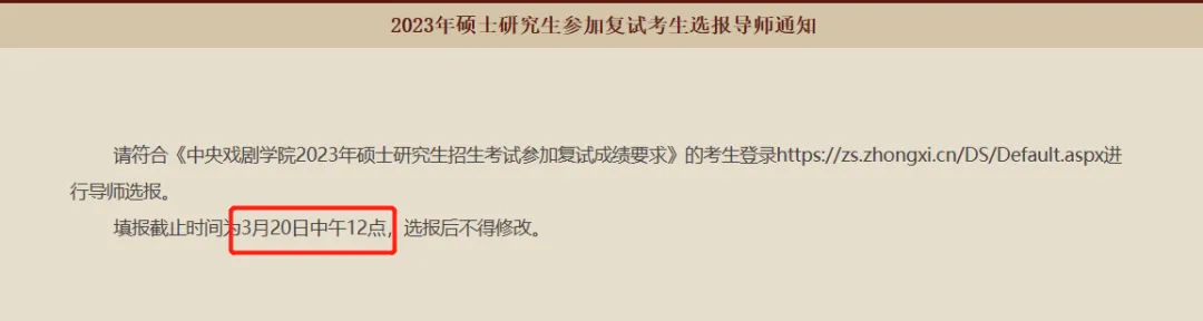 ②中央戏剧学院:参加复试基本要求,初试总分不低于362分。并且在3月20日前进行选导师。
