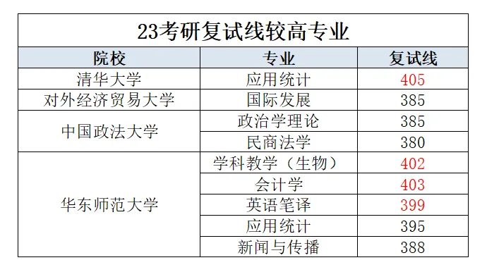 ③华东师范大学:复试分数线已公布,许多专业复试线都超出国家线很多,比如学科教学(生物)复试线402分,会计学403分。