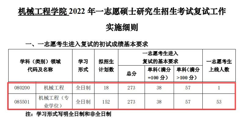 机械工程(专业学位):一志愿上线人数53人,最终全部录取。