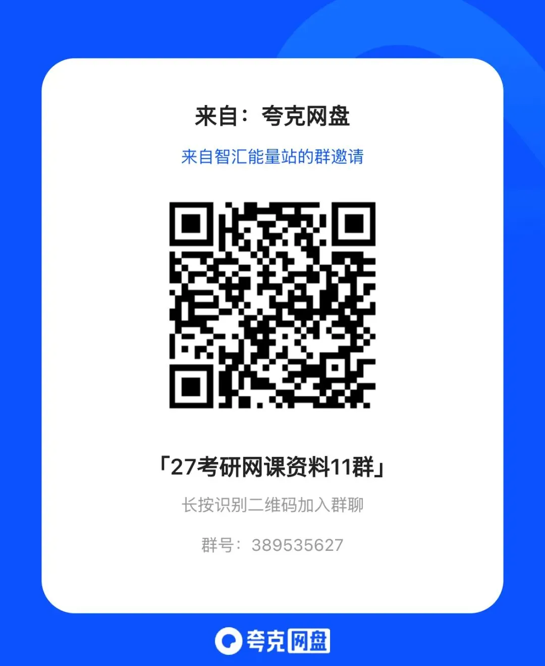 26考研网课资源都整理好了,考研人都在这个群里,我把整理好的考研资料都放在百度网盘群和夸克网盘了,每天同步更新电子资料和视频网课,有需要的宝子们赶紧扫码进群哦,群满或者有问题随时联系我:kaoyan1328