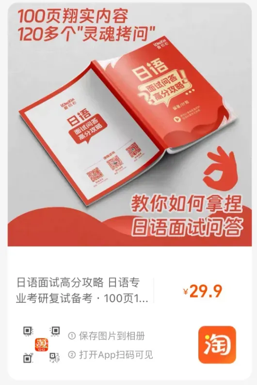 炸鸡老师:各位同学大家好,日语面试作为日语专业考研・日语专业保研考核过程中的核心环节之一,不仅是检验各位考生语言素养与专业功底的试金石,更是展现个人综合素养的重要舞台。《日语面试高分攻略》这份资料的编写初衷,正是为了帮助那些即将面临日语面试的学子们,提供一份详尽的指导和支持。本资料精心挑选了一系列在日语专业面试中常见的问题,并提供了详细的回答范例,旨在帮助学子们理解如何构建一个有说服力的回答。希望通过阅读《日语面试高分攻略》,每位学子都能够在面试中发挥出自己的最佳水平,在学术发展上能够迈出坚实的一步。衷心祝愿每一位同学都能在日语面试中取得高分,实现自己的梦想和目标。