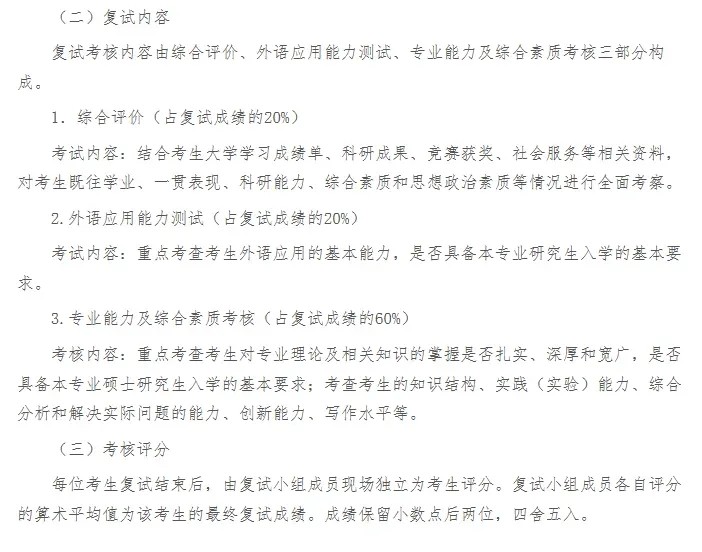 主要包括口语复述与话题阐述两部分,一部分内容是现场给你一篇短文,字数大概在500-600之间;给你3、4分钟的时间去阅读,理解文章意思,用自己的话把文章内容复述一遍。另一部分内容是针对提供的热点话题进行阐述,表达自己的观念,老师会针对你回答的内容进行提问。这种话题的选择具有很大的随机性,被问到的话题也具有扩展性,所以大家平时可以多积累,并适当做话题的延伸扩展练习,对口试会起到很大的帮助哦~个人经验:关于日常性的话题词汇一定要先积累起来并且记牢,再去记一些专业性词汇,不断去扩展延伸。最主要的是表达的流畅度,不一定回答的都是很高深的词汇,用简单的单词清楚的表达内容,口语分数就不会低。专业课考察的分数占比是比较高的,要尽量动用一些资源,包括认识的老师、学长学姐、辅导员等,看能否帮忙收集到目标院校的复试信息。初试后出分前:适度休整后即开始搜集复试信息,梳理专业课框架,站在更高视角理解学科体系。出分后:根据成绩定位复习重点,强化逻辑表达训练,展现学术潜质。复试前3天:整理复试重难点,在考前进行模拟自测,查缺补漏,制定应答策略。面试可能采取抽题或即兴提问形式,常见考察方向包括:核心概念阐释