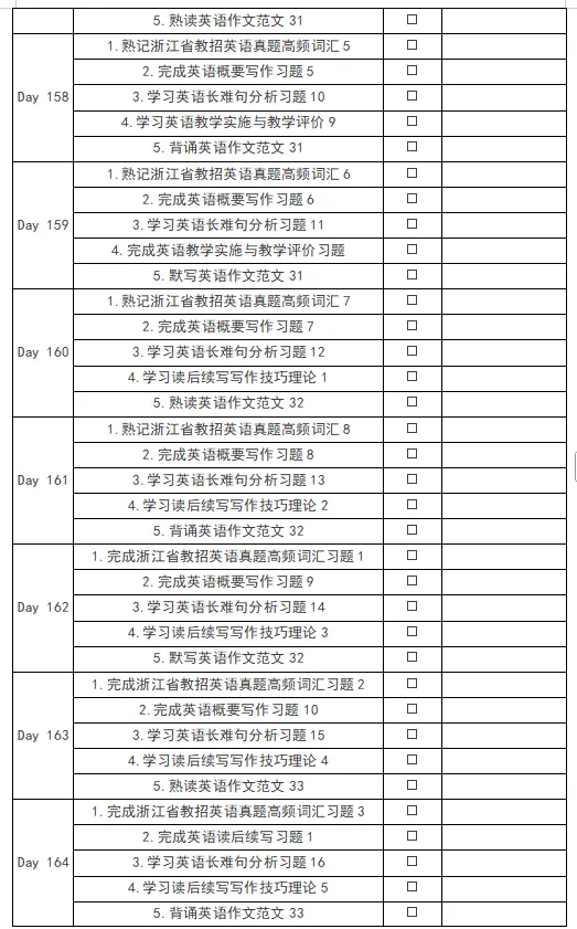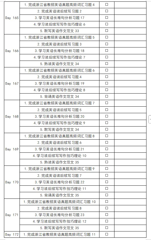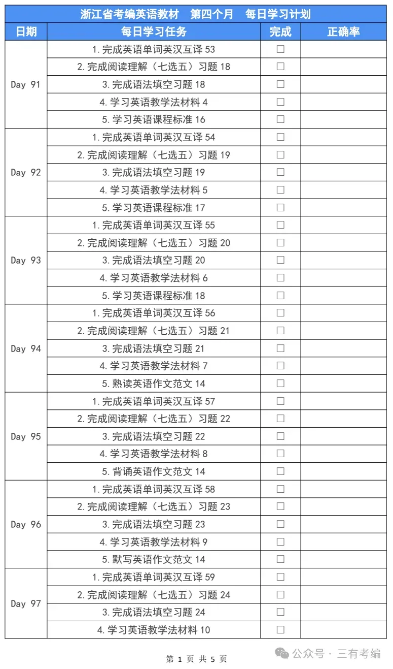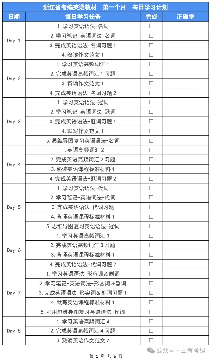 1.浙江省考编英语教材每日学习计划打卡表格