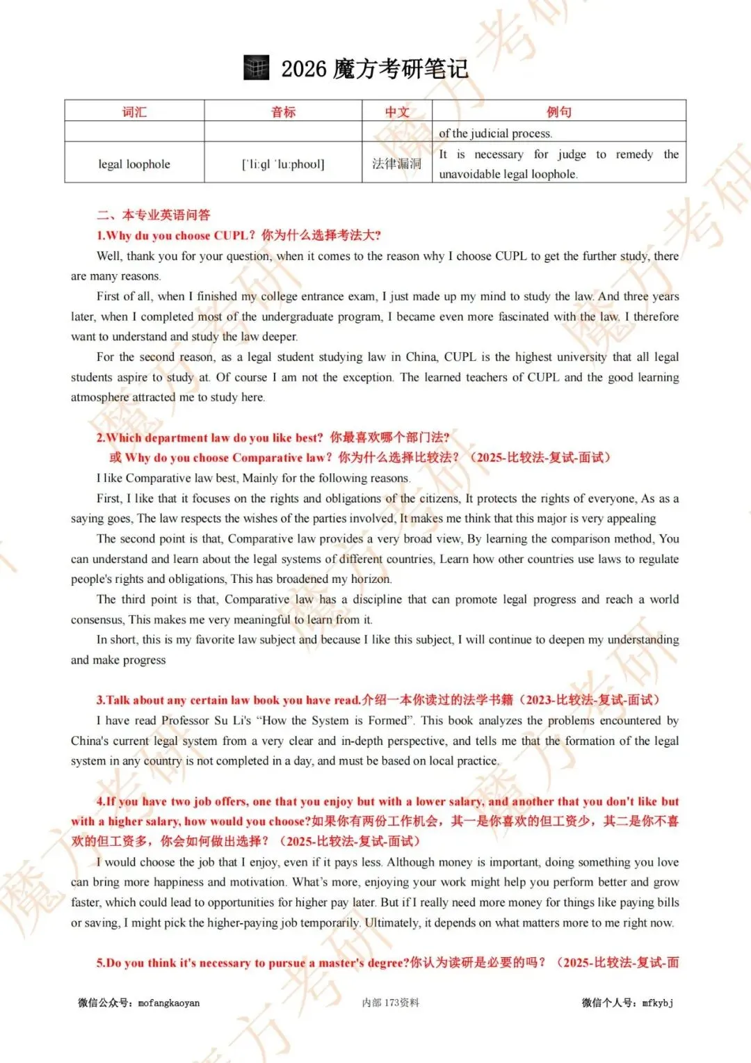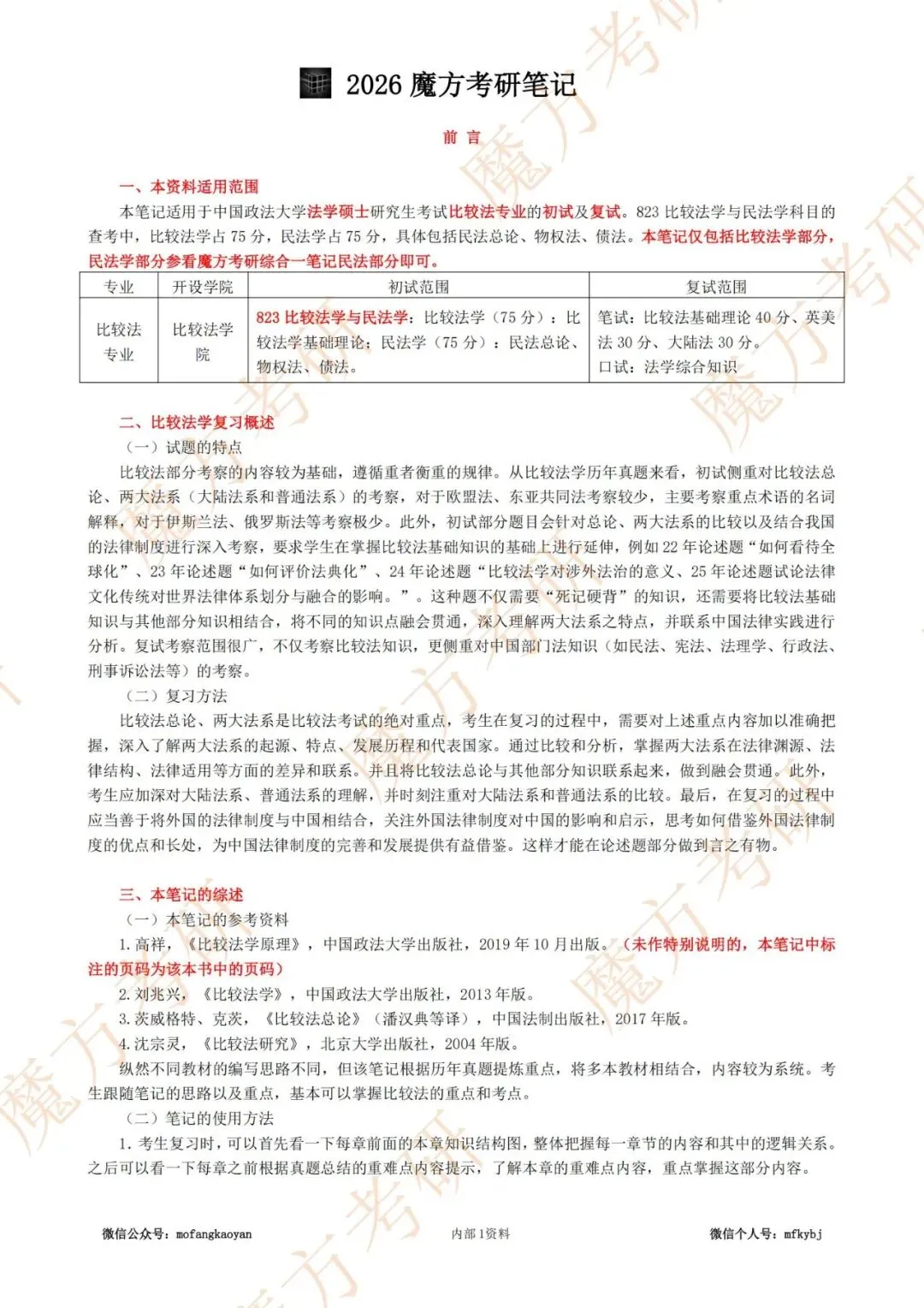 小伙伴们大家好,26考研,比较法专业复试用我们原823比较法笔记,另有复试小册子也可以参考使用(方便背诵)。