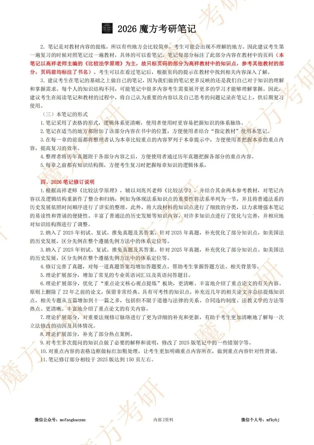 9.笔记修订部分相较于2025版达到150页左右。