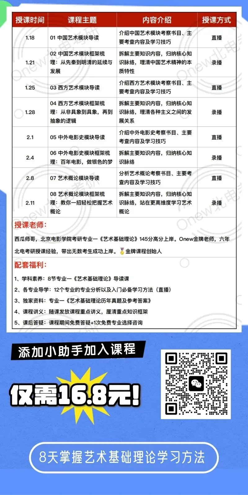 我们把这套经验融合在了2027早鸟带读课的课程设计里。我们希望所有 0基础/跨考/本专业 的考生都能够全面透彻的认识了解北电考研/了解艺术基础理论的学习。
