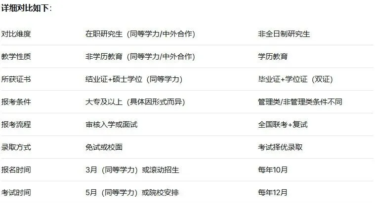 非全日制研究生:适合具备5年工作经验的大专生或3年工作经验的本科生(现也允许应届生报考)