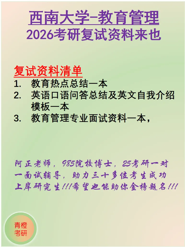 阿正老师,985院校博士,25考研一对一面试辅导,助力三十多位考生成功上岸研究生!!!希望也能助你金榜题名!!!