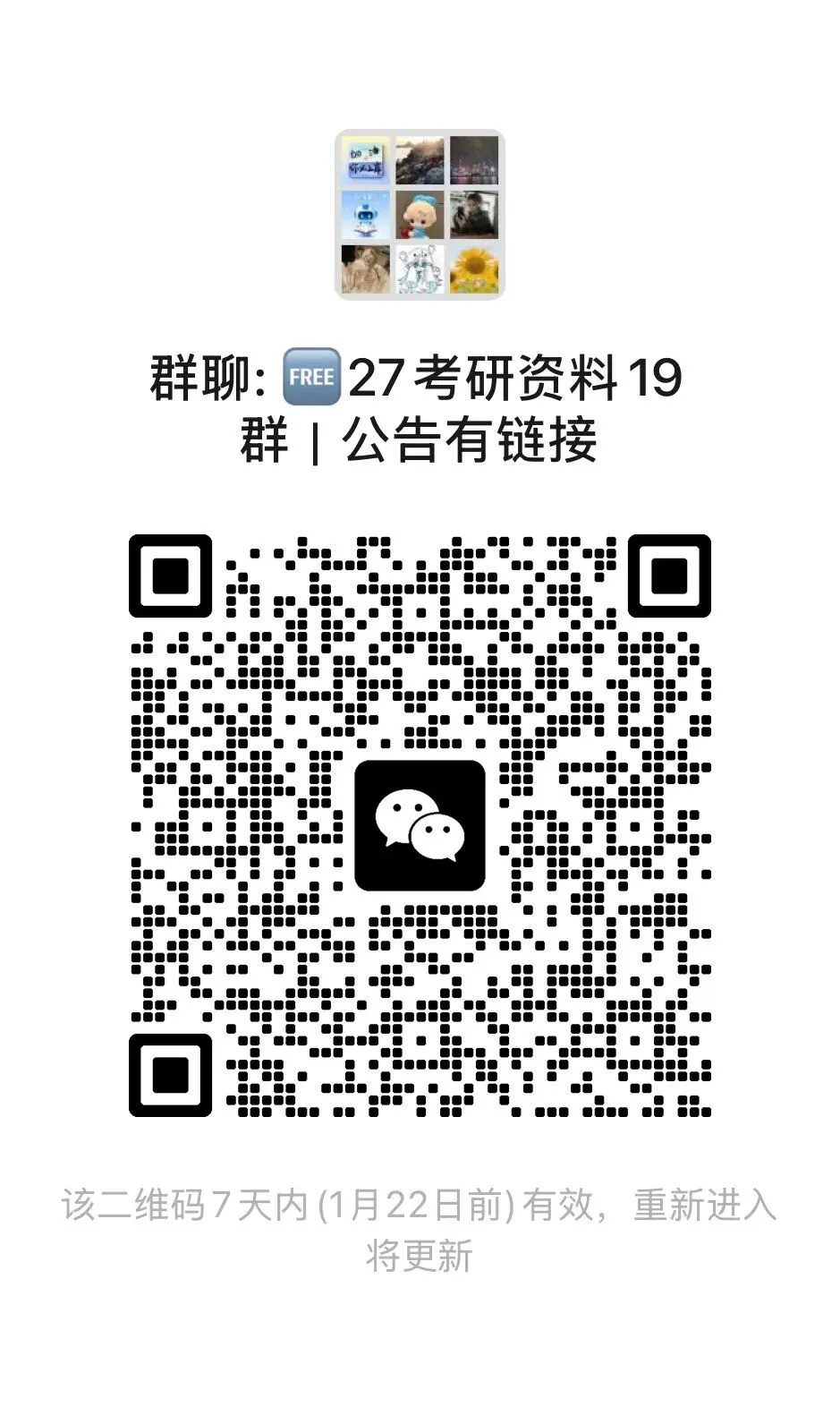 26考研网课资源都整理好了,考研人都在这个群里,我把整理好的考研资料都放在百度网盘群和夸克网盘了,每天同步更新电子资料和视频网课,有需要的宝子们赶紧扫码进群哦,群满或者有问题随时联系我:kaoyan1328