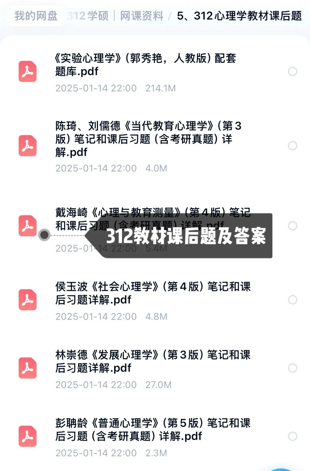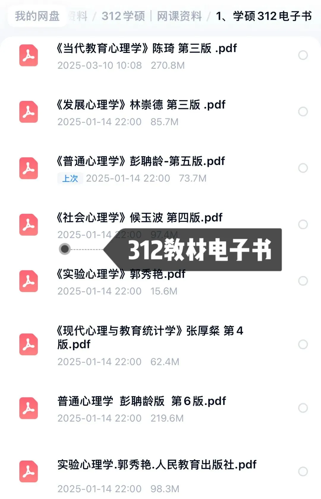 价值59元的【312心理学考研教材电子书+实统测超有用资料】超实用资料包免费领!(具体如下👇)