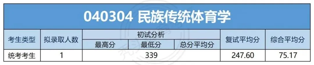 民族传统学一志愿全日制统考拟录取1人;拟录取总分339分。