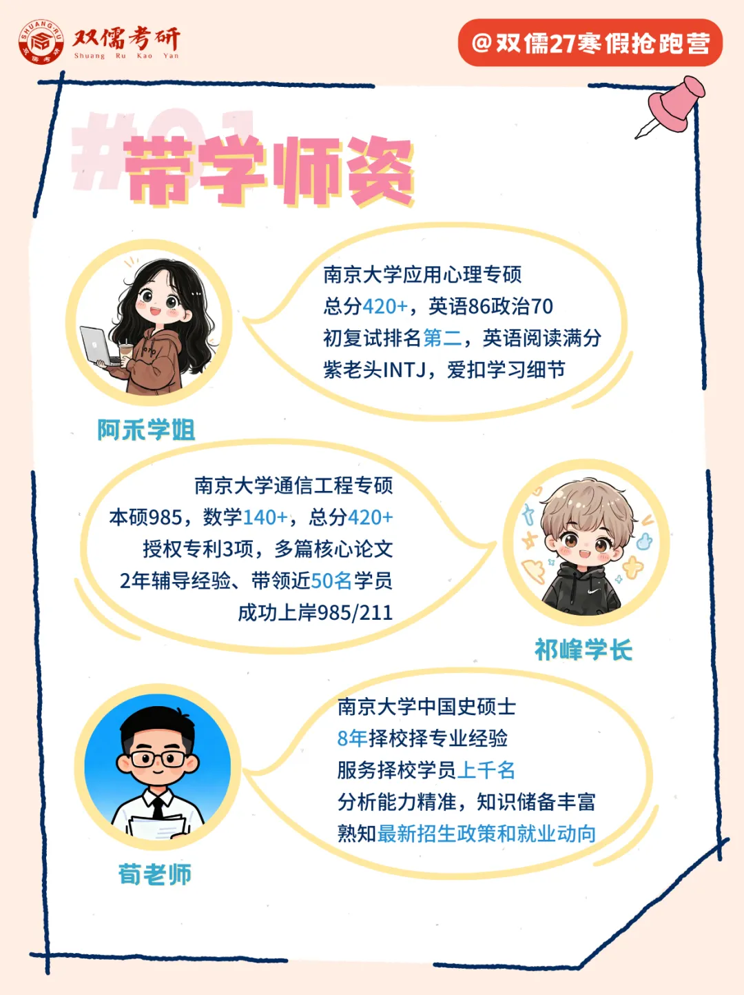 高分上岸的学长学姐和经验丰富的荀老师全程陪伴,什么择校、英语和数学难题全解决!