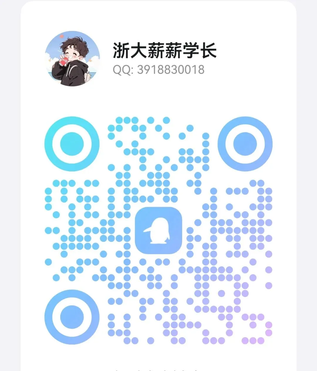 2、长按识别图二维码→关注公众号→后台回复“抢跑班”→获取群入口与薪薪学长QQ