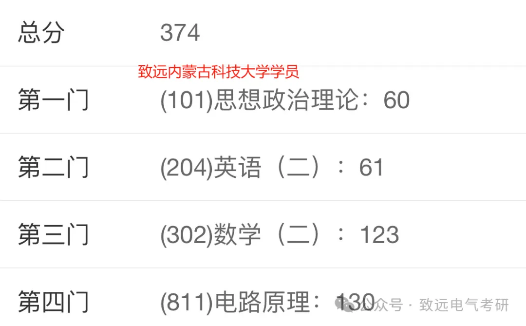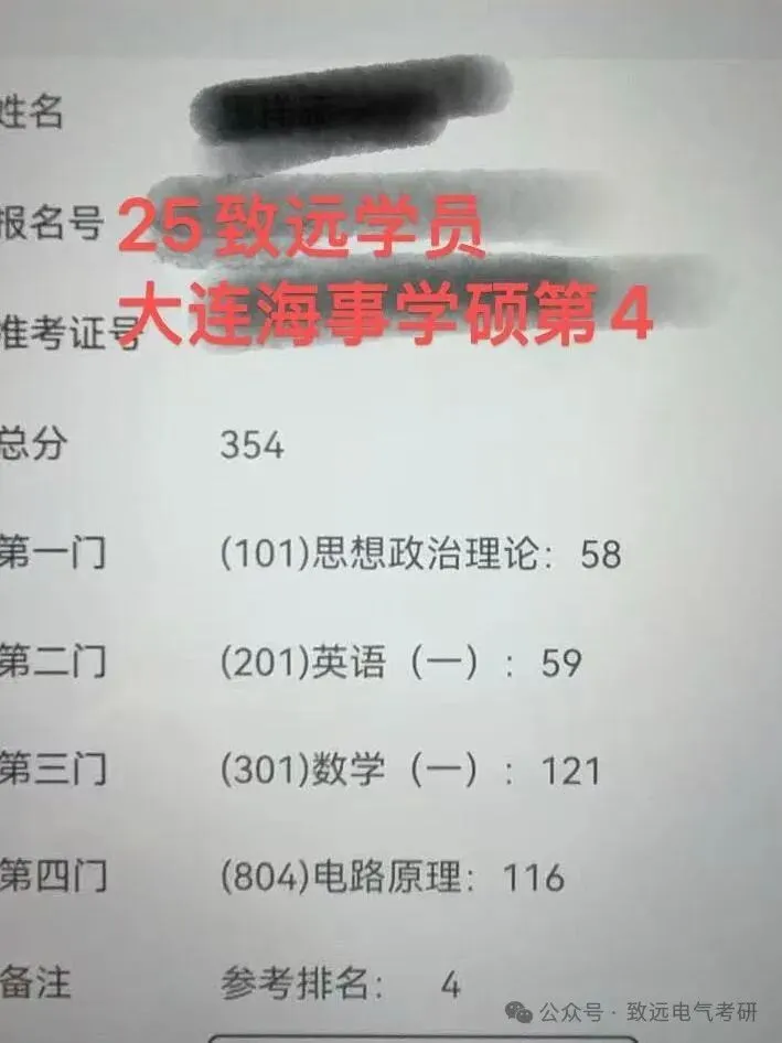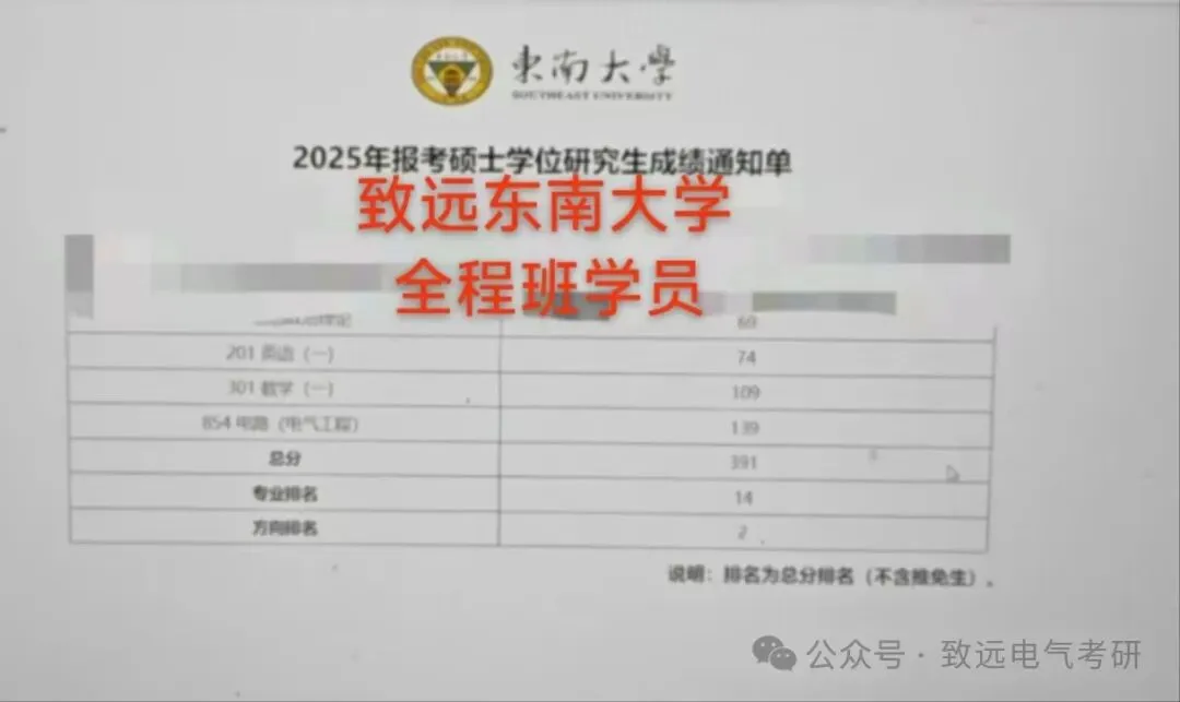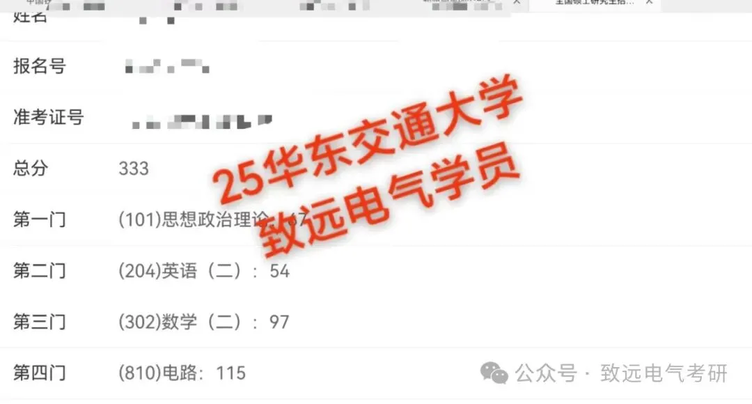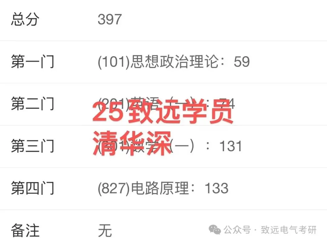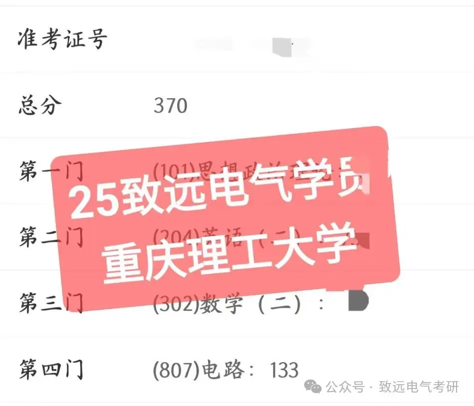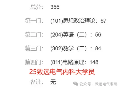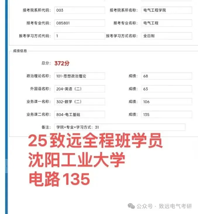 现向大家展示致远25电气考研辅导下各个院校的部分高分代表: