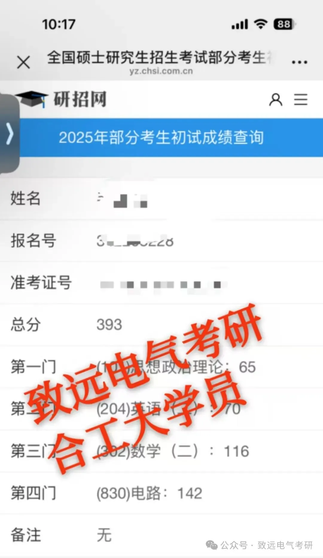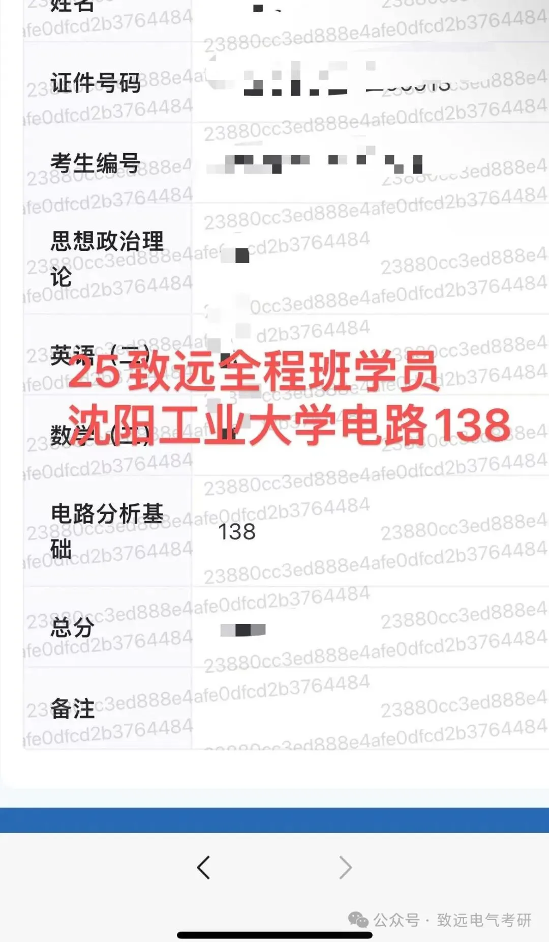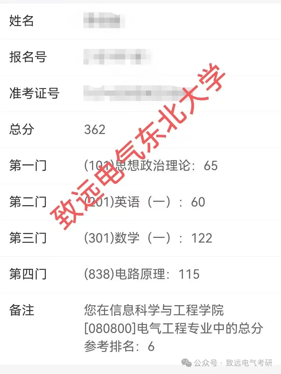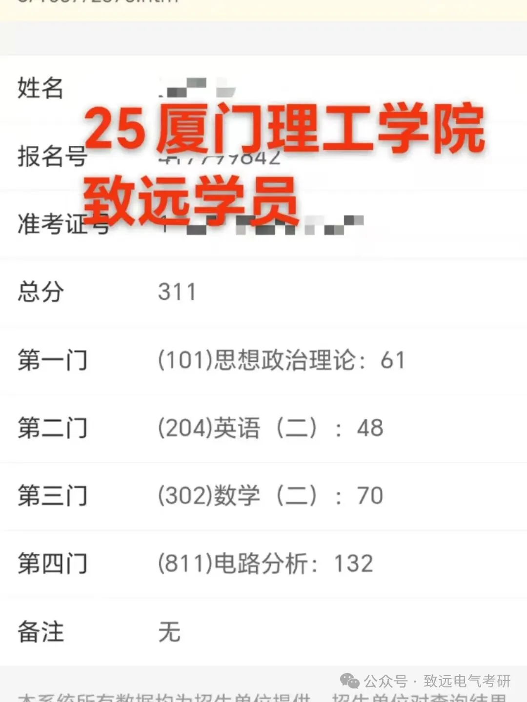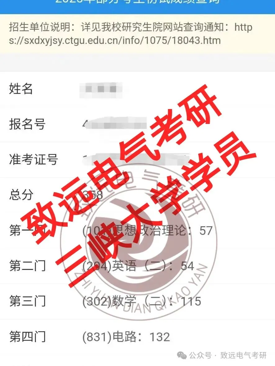 现向大家展示致远25电气考研辅导下各个院校的部分高分代表: