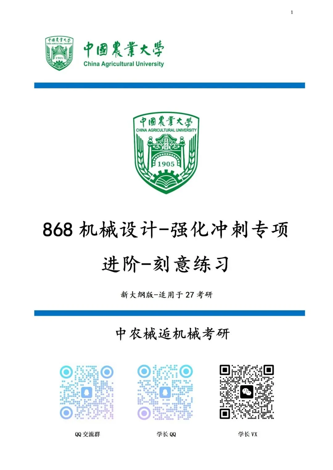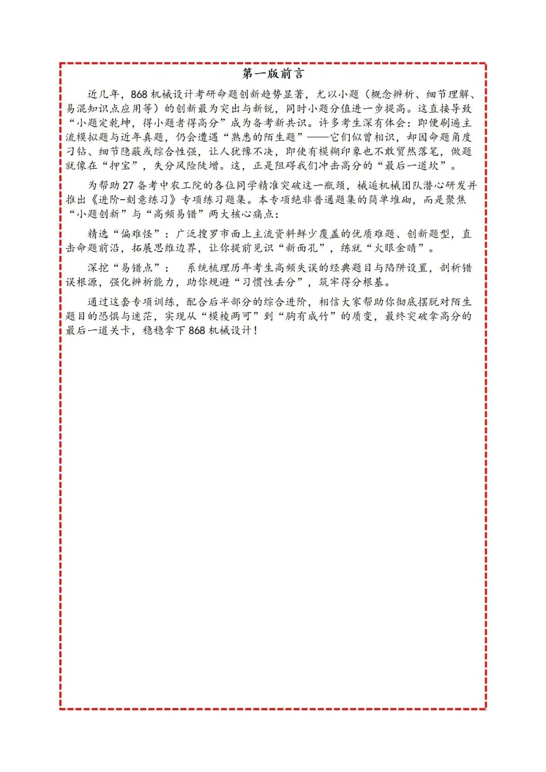 各位27考研的小伙伴们,你们好,这里是专注于中国农业大学机械考研的械逅团队,今天给大家分享的资料是868机械设计冲刺专项《刻意练习》