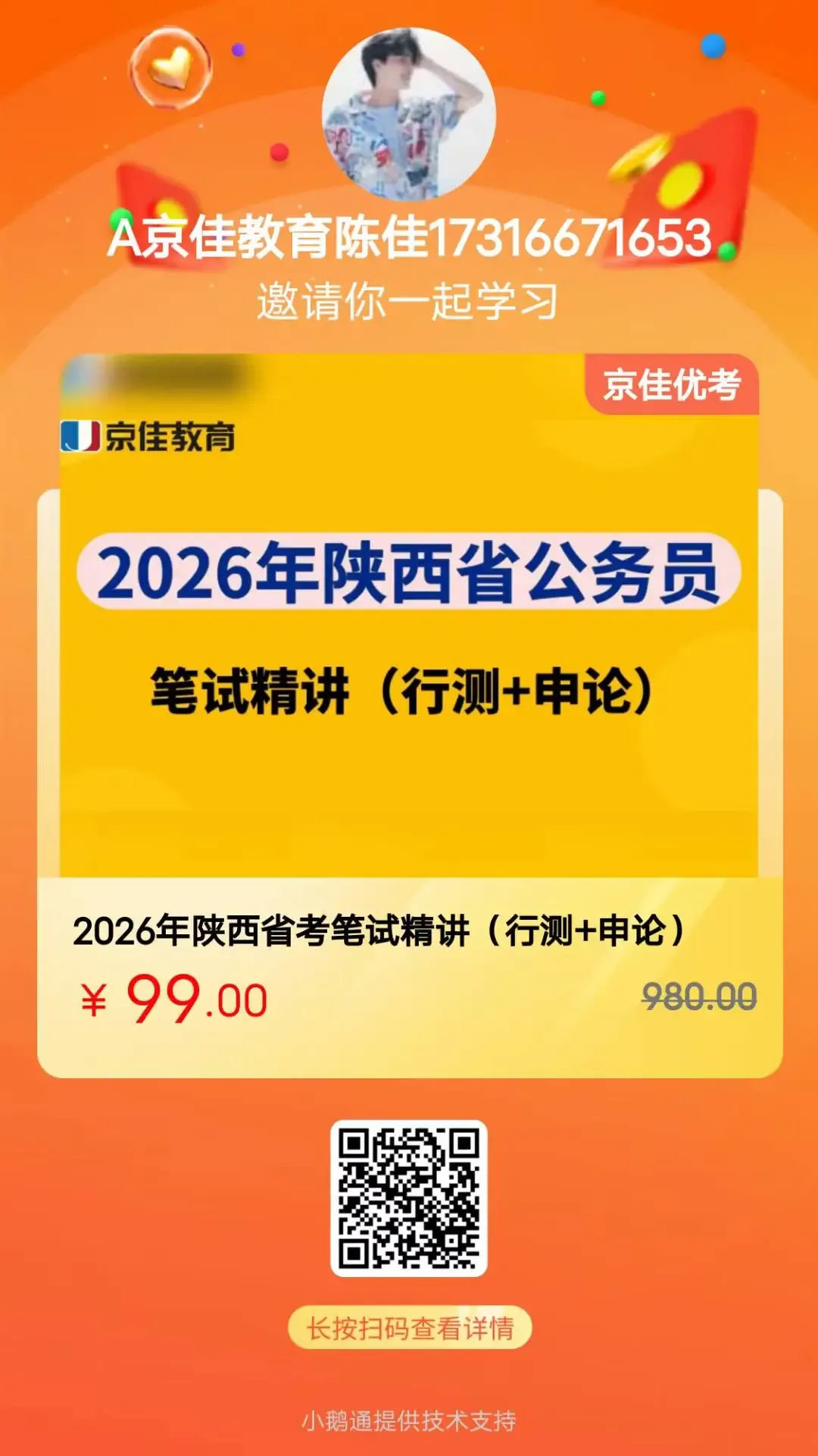 陕西省考/事业单位双线备考课程,原价980元,限时惊天补贴!仅需99元!一顿饭的代价,换一次改变人生的机会。