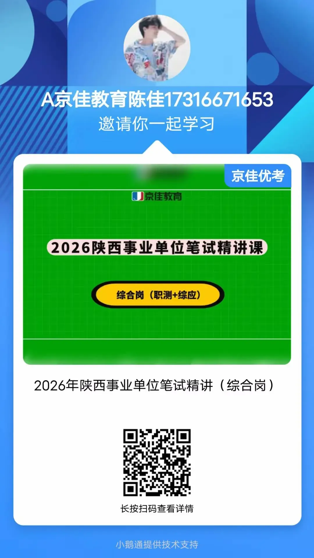 📦 不只99元,更有“硬核加赠”✅ 免费邮寄全套纸质讲义——厚重质感,随手标记,告别电子屏的疲惫。✅ 系统精讲课程覆盖行测、申论、职测、综应——紧扣陕西考情,直击考点。