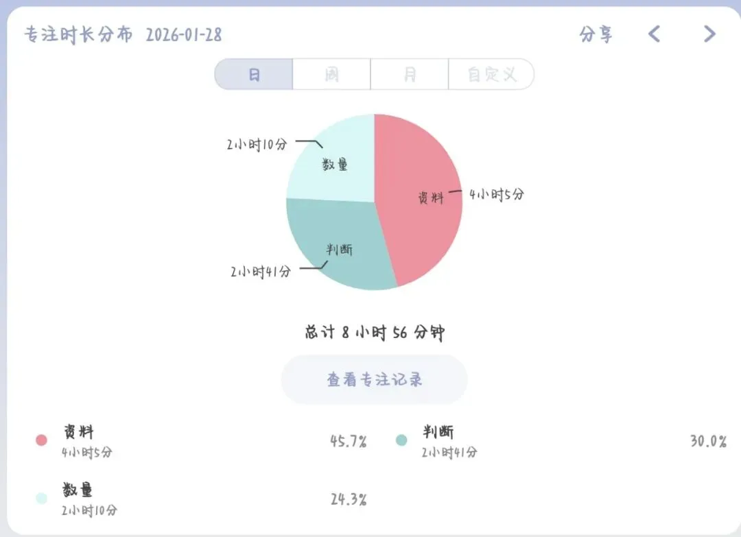 对于判断方面,今天写类比结果惨不忍睹一大片错题,定义也是,没关系哒!只要在考前,这就是提升,类比集中在老是忘记色彩辨析,贬义褒义后续会多思考一下。加强削弱还是自己比较拿手板块基本可以维持在90%左右正确率,我感觉可能更多就是去按照中心理解的方式做,不知道是不是自己的错觉,大部分都是主题词不一致排掉哈哈哈哈哈,等我再看看!