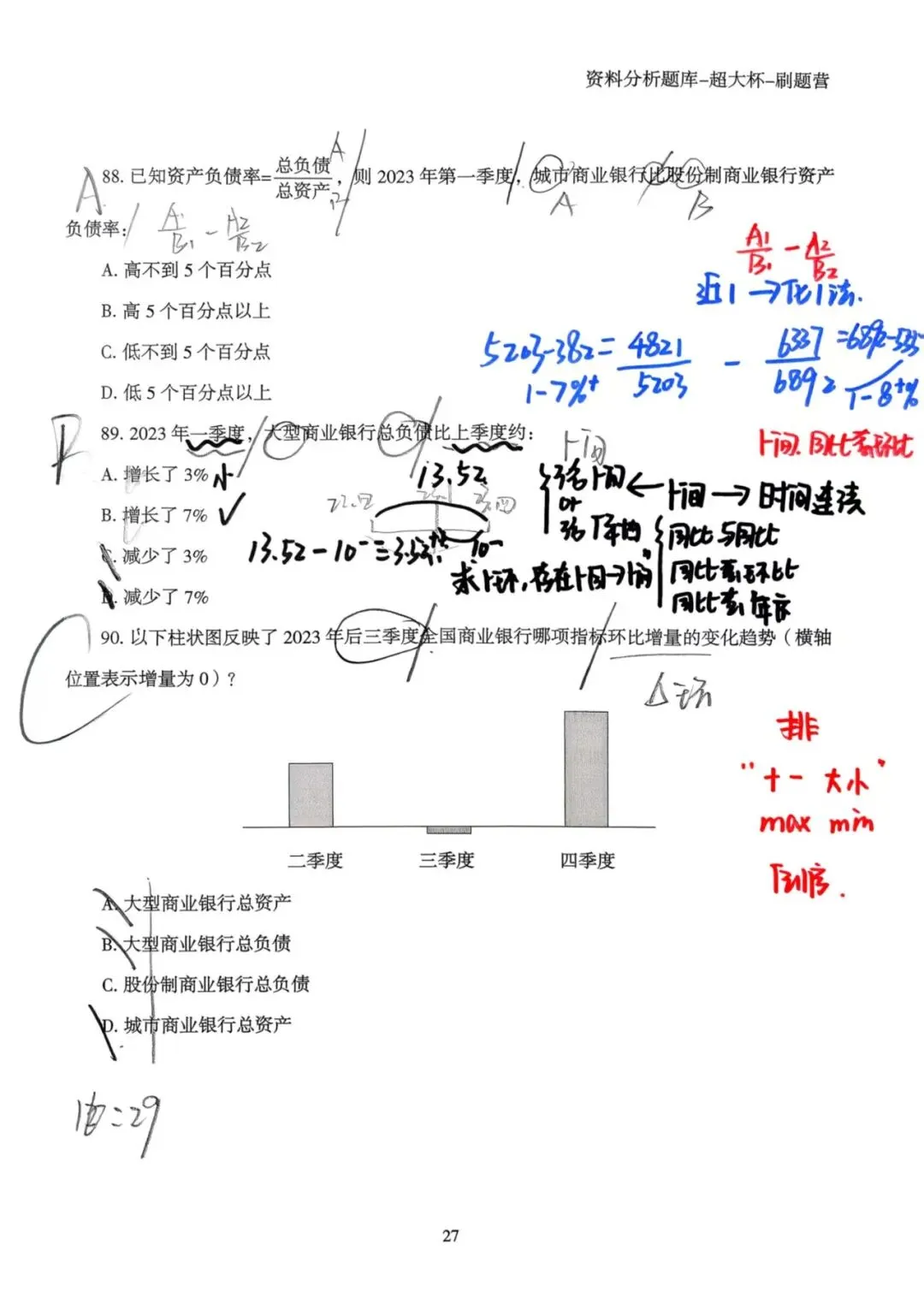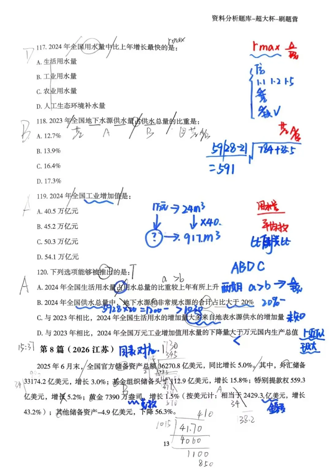 再和大家分享一下这两天做题,总结下来,发现自己资料可以优化的地方有两个:第一,尽量逼着自己看,估算,不全部死算,速度可以提升;第二,就是学会舍弃个别难题,今天写了一组,就是在一个题上面耗费时间,结果又怕写的时间久,导致慌着写,连错三题,而且全是在计算上面,得不偿失。因此,后面可能会选择跳过个别,保证90%正确率即可。