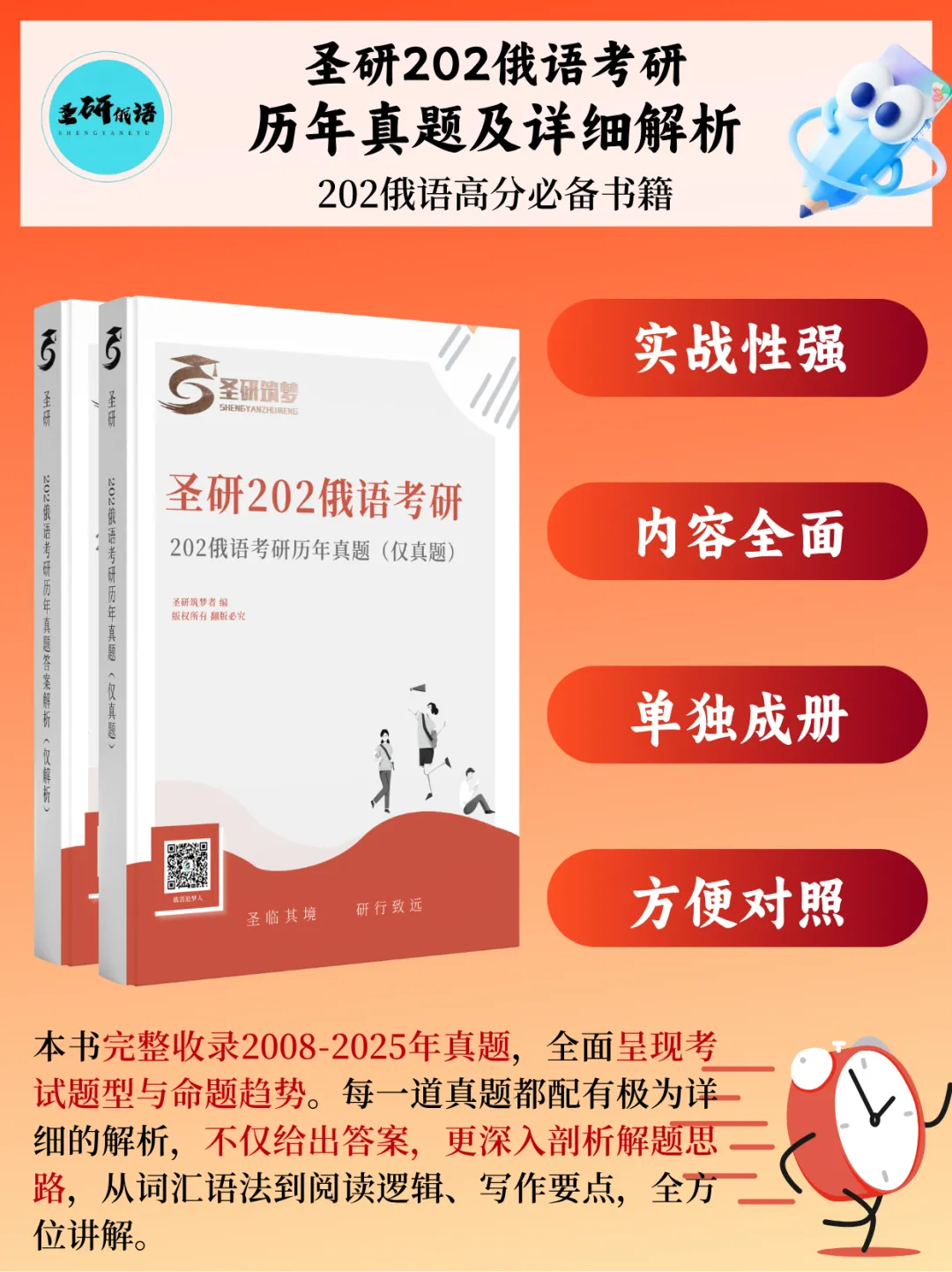 书籍简介:完整收录2008-2025年真题,全面呈现考试题型与命题趋势。每一道真题都配有极为详细的解析,不仅给出答案,更深入剖析解题思路,从词汇、语法到阅读逻辑、写作要点,全方位讲解。无论是基础巩固,还是冲刺提升,考生都能借此书精准把握考试重点,发现自身知识漏洞,高效提升俄语水平,为考研成功增添有力保障 。