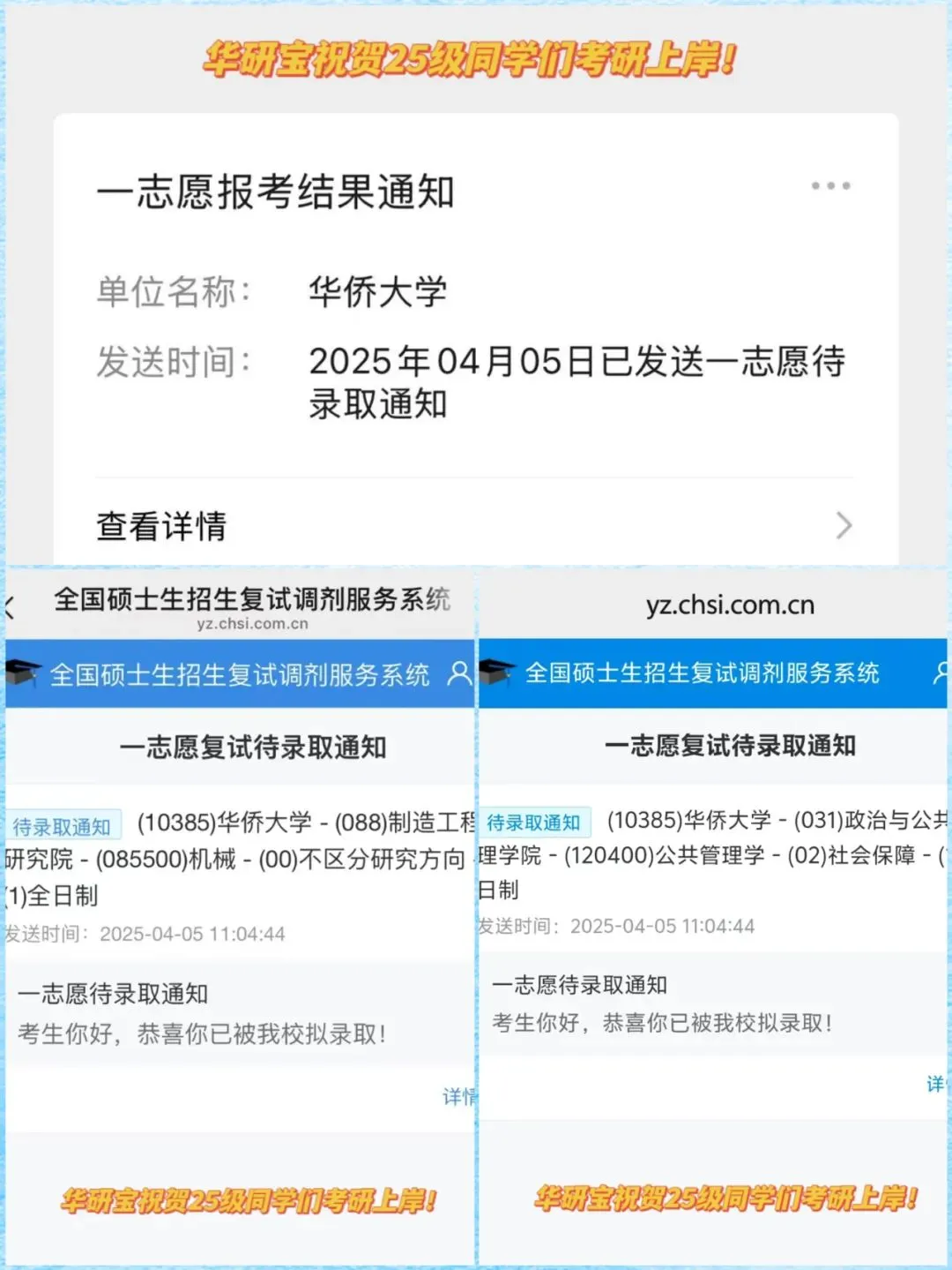 华研宝华侨大学2025考研同学喜报(部分)