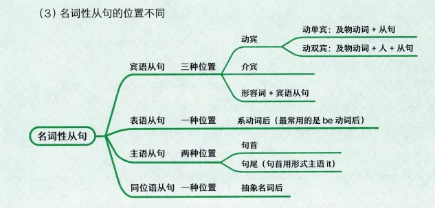 比如书中对“名词性从句”的位置进行了精炼的总结,让你一眼看懂其核心考点: