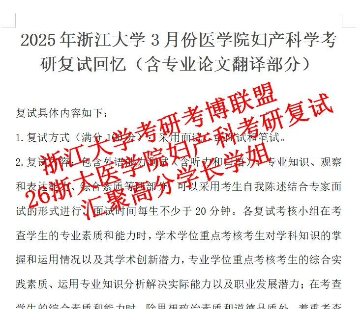 1. 2025年3月份浙江大学妇产科考研复试回忆