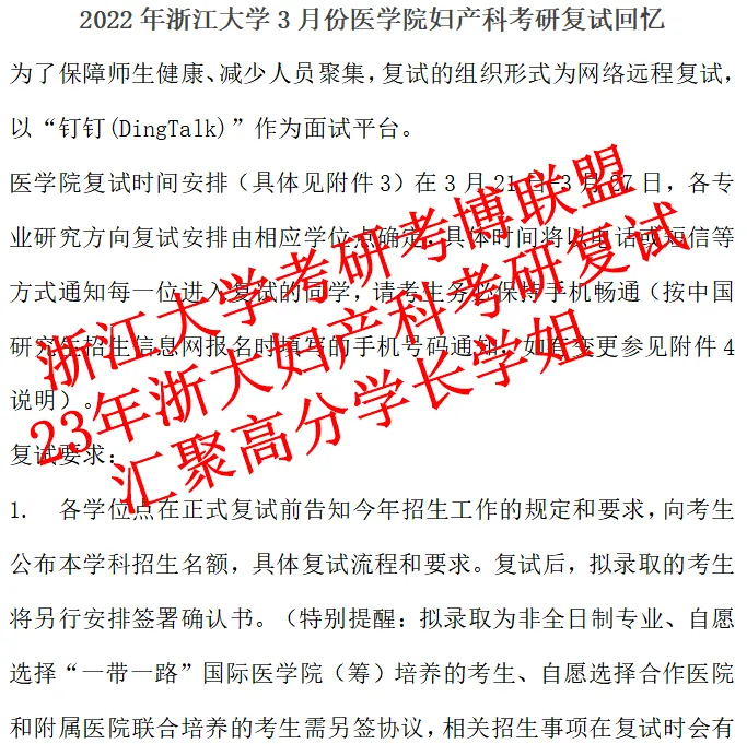 3. 2022年3月份浙江大学妇产科考研复试回忆