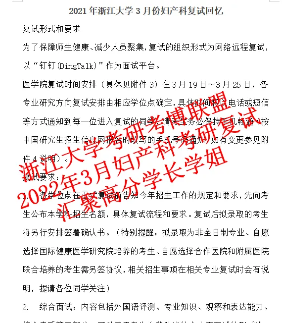 4. 2021年3月份浙江大学妇产科考研复试回忆