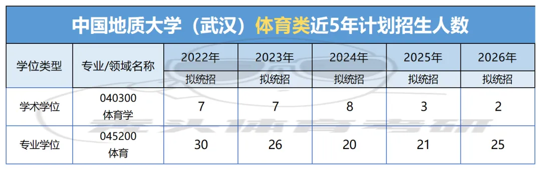 2026年中国地质大学(武汉)体育学院拟统考全日制硕士研究生27名。