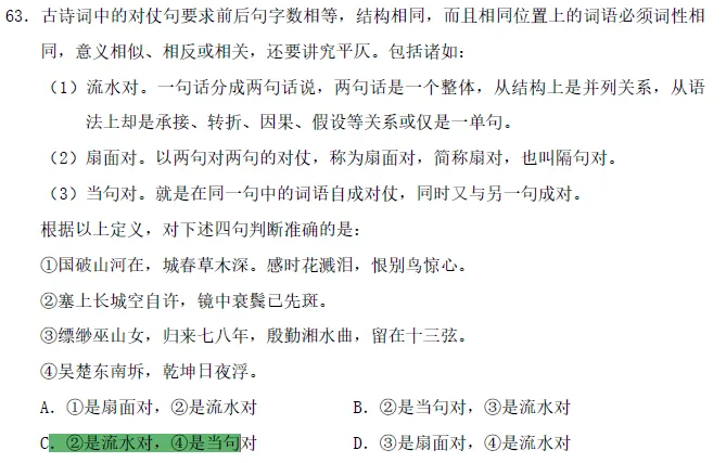 第一句对第三句,第二句对第四句