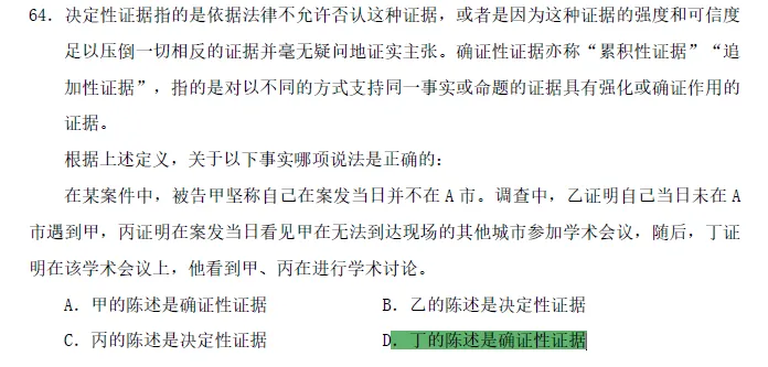 决定性证据——强度压倒一切相反证据,确认性证据——不同方式支持同一事实,强化/确认作用