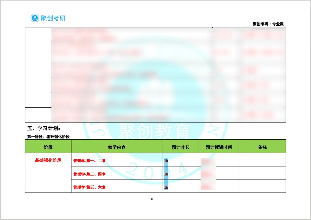 ⭕聚创考研专业课一对一辅导计划制定全程专业课精细化复习规划,贴心地为你准备专业课全年复习规划及各个阶段具体学习计划详情表。