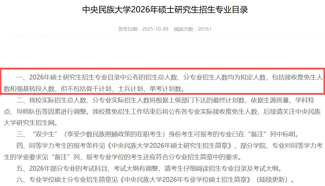 📢中央民族大学发布2026年硕士研究生招生信息
