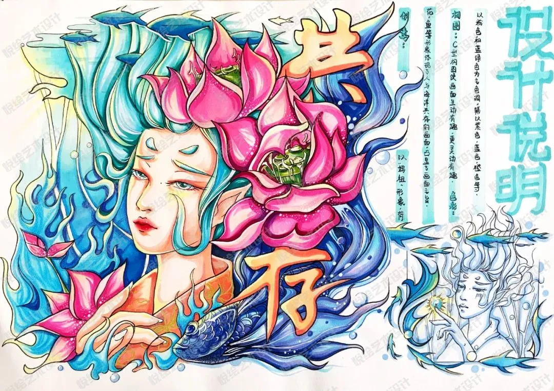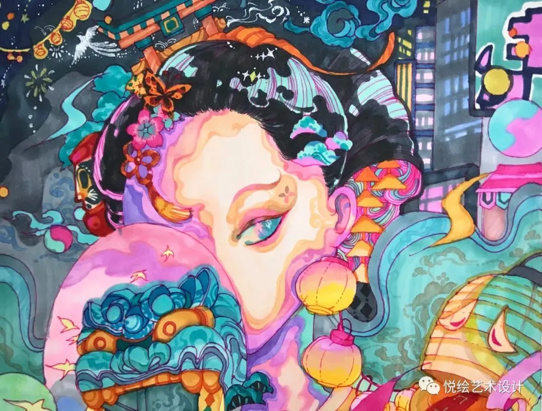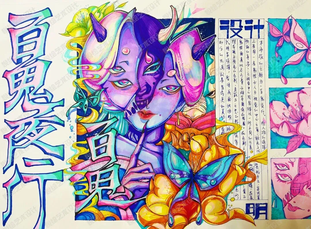 悦绘艺术设计原创|视觉传达设计|创意类手绘快题《百鬼夜行》绘制示范