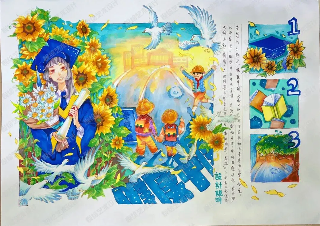 悦绘艺术设计原创作品|武汉轻工大学|手绘真题——《健康中国》范画绘制示范