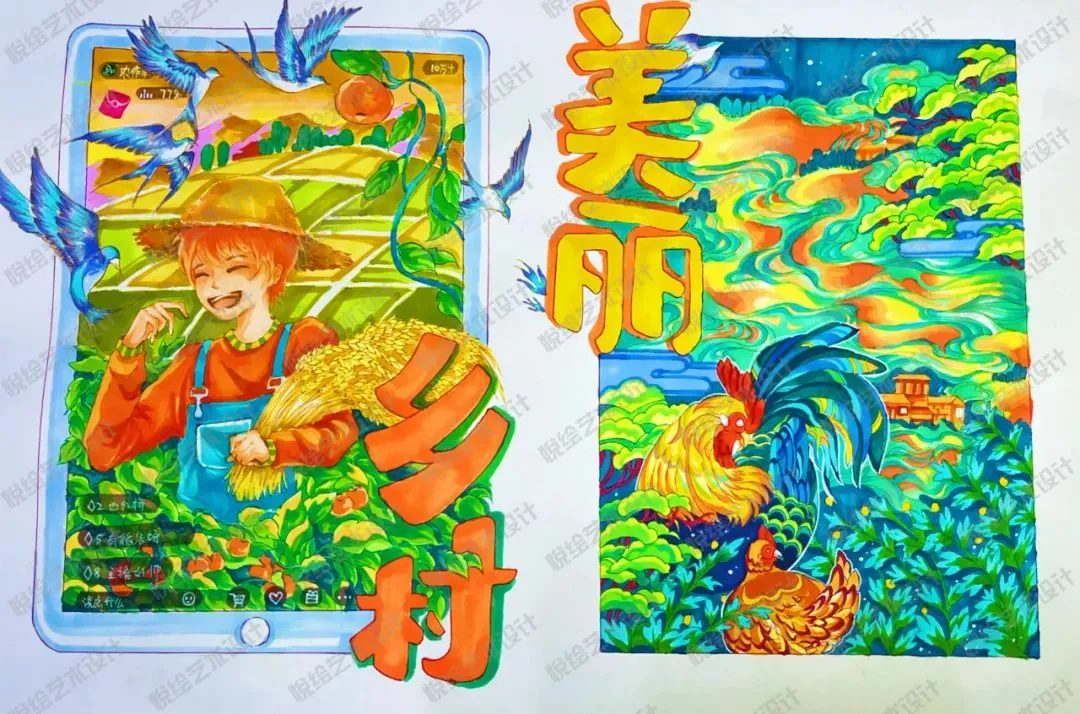 悦绘艺术设计原创作品|中国地质大学|手绘真题——《美丽乡村》范画绘制示范
