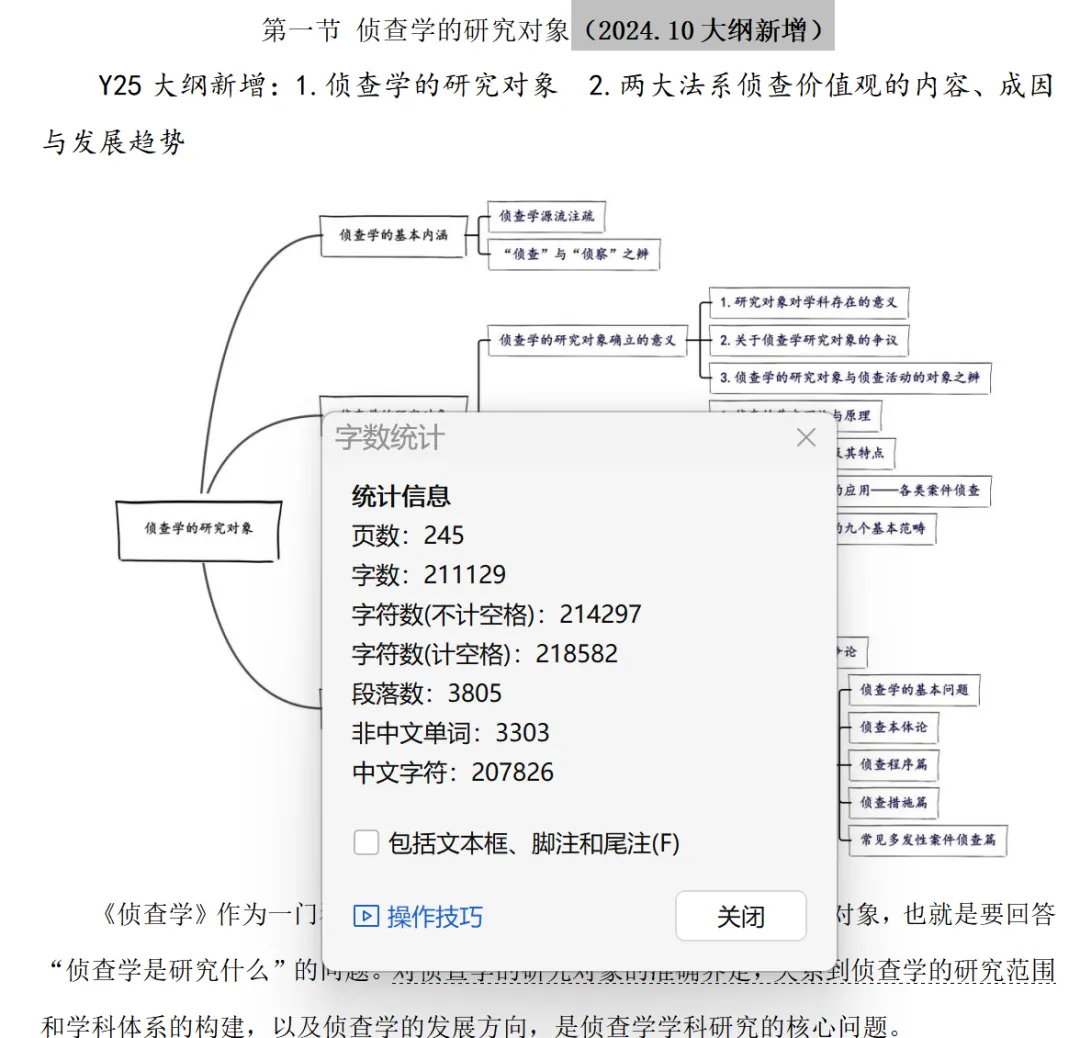 1.《侦查学》原讲义为205页、16万6千字,新版讲义拓展为245页、20万7千字。