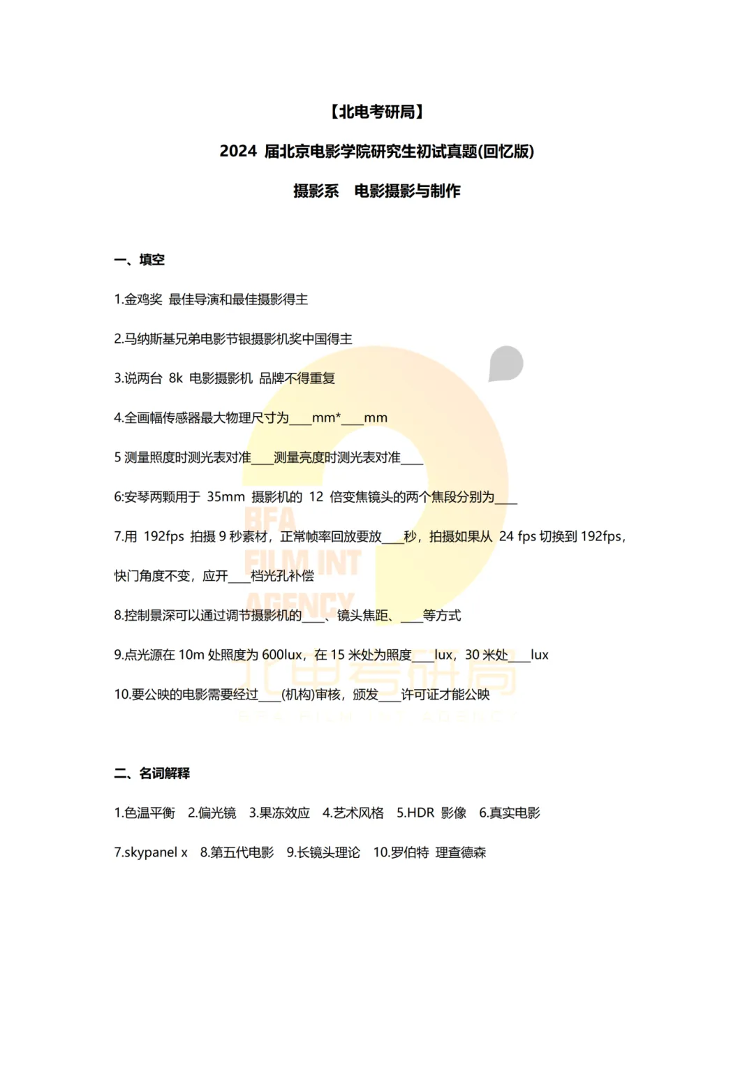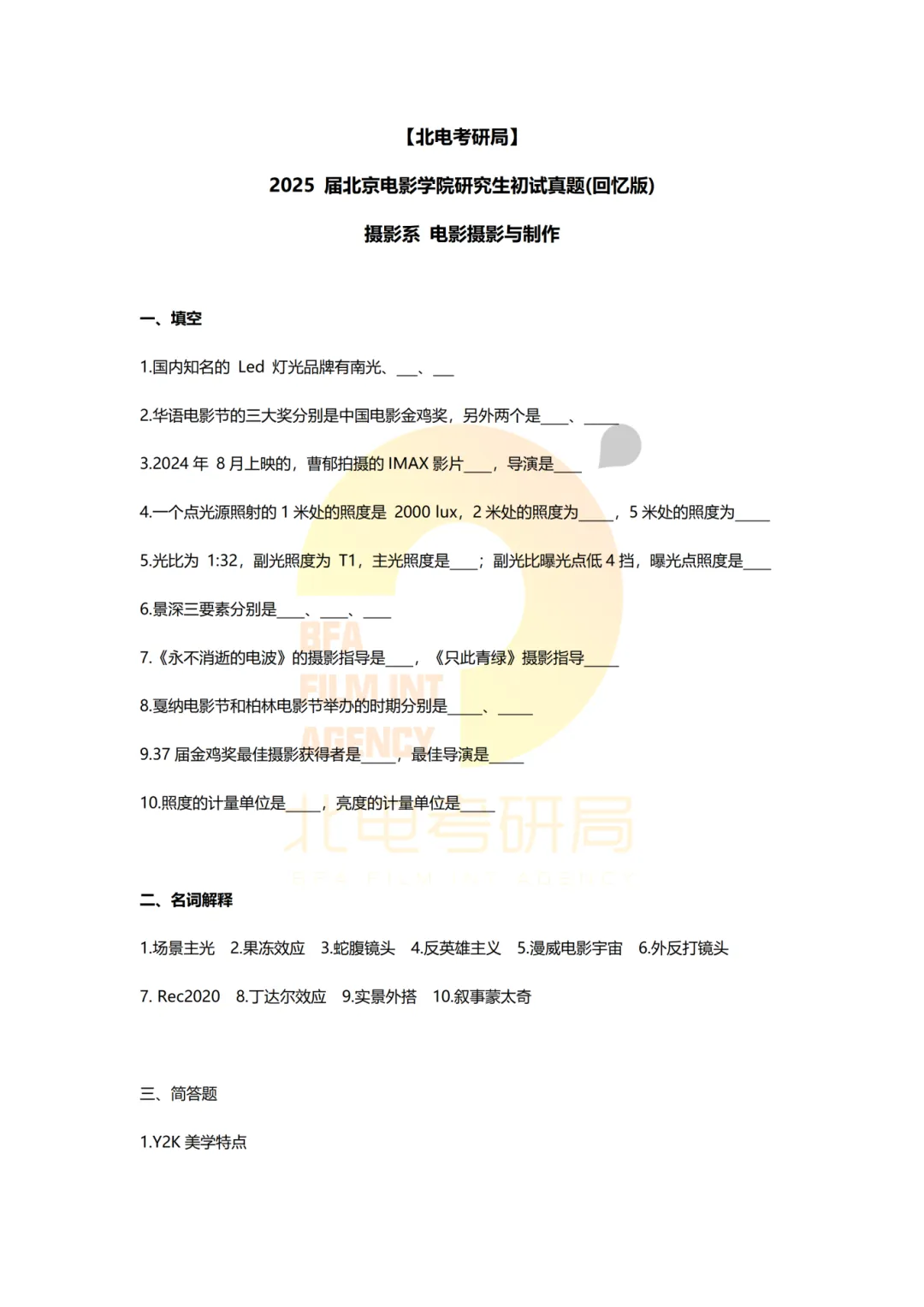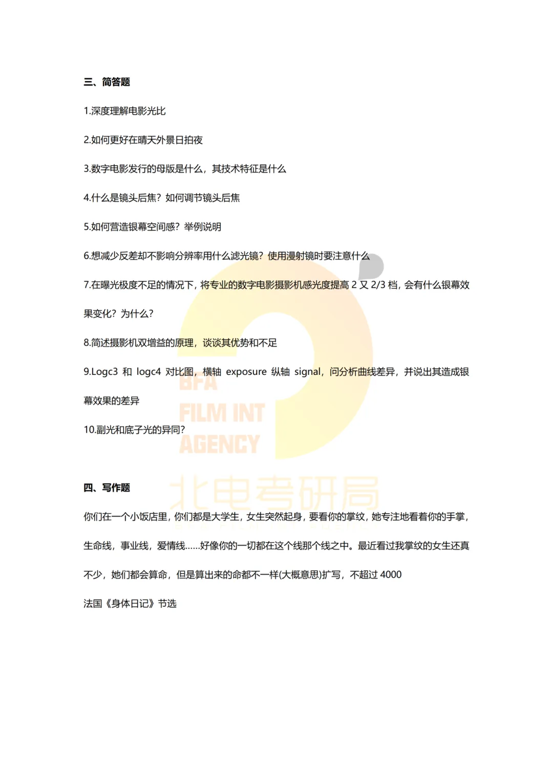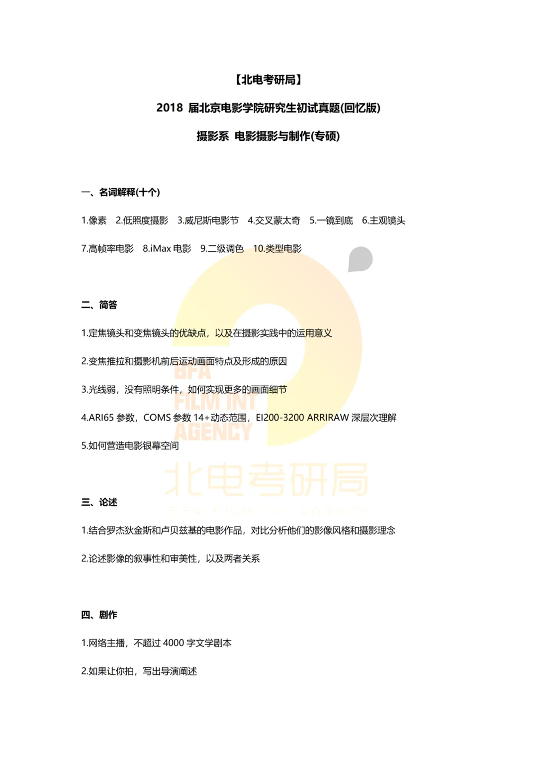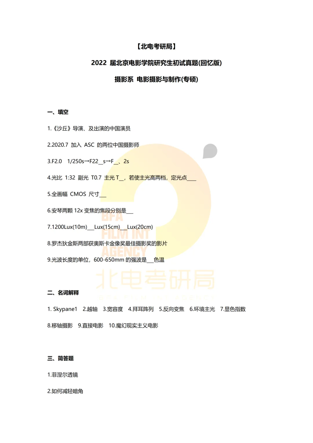 真题档案 | 北电考研摄影系—电影摄影与制作近十一年真题汇总!