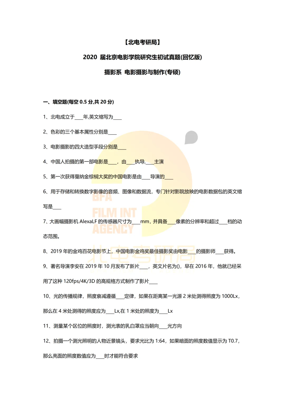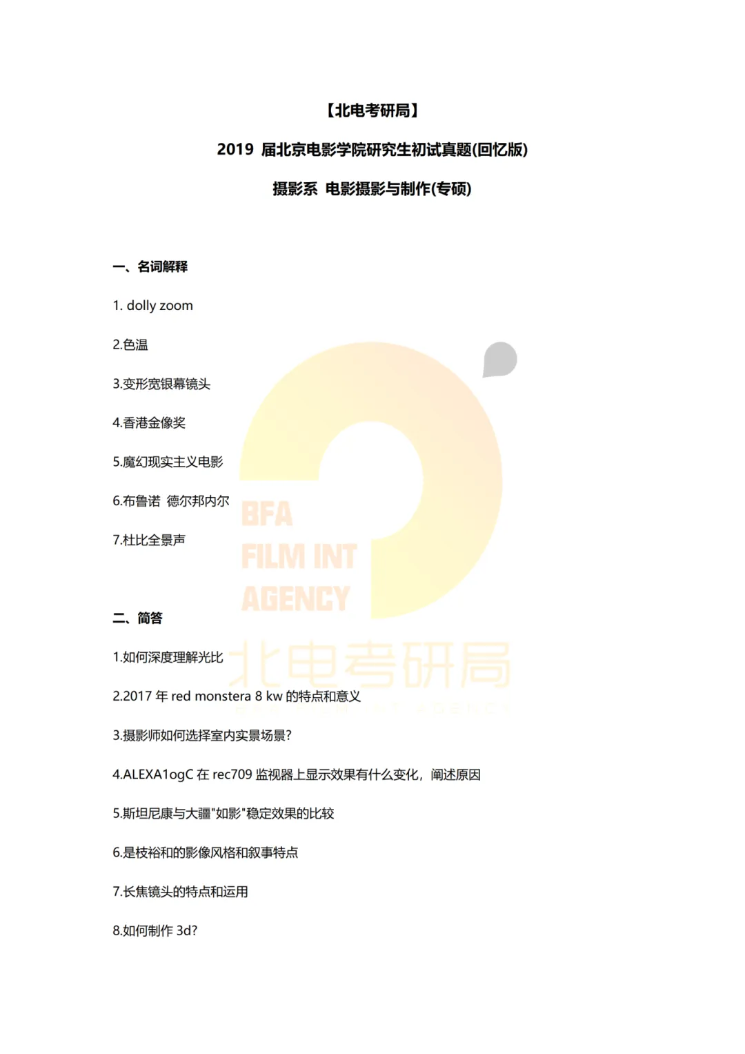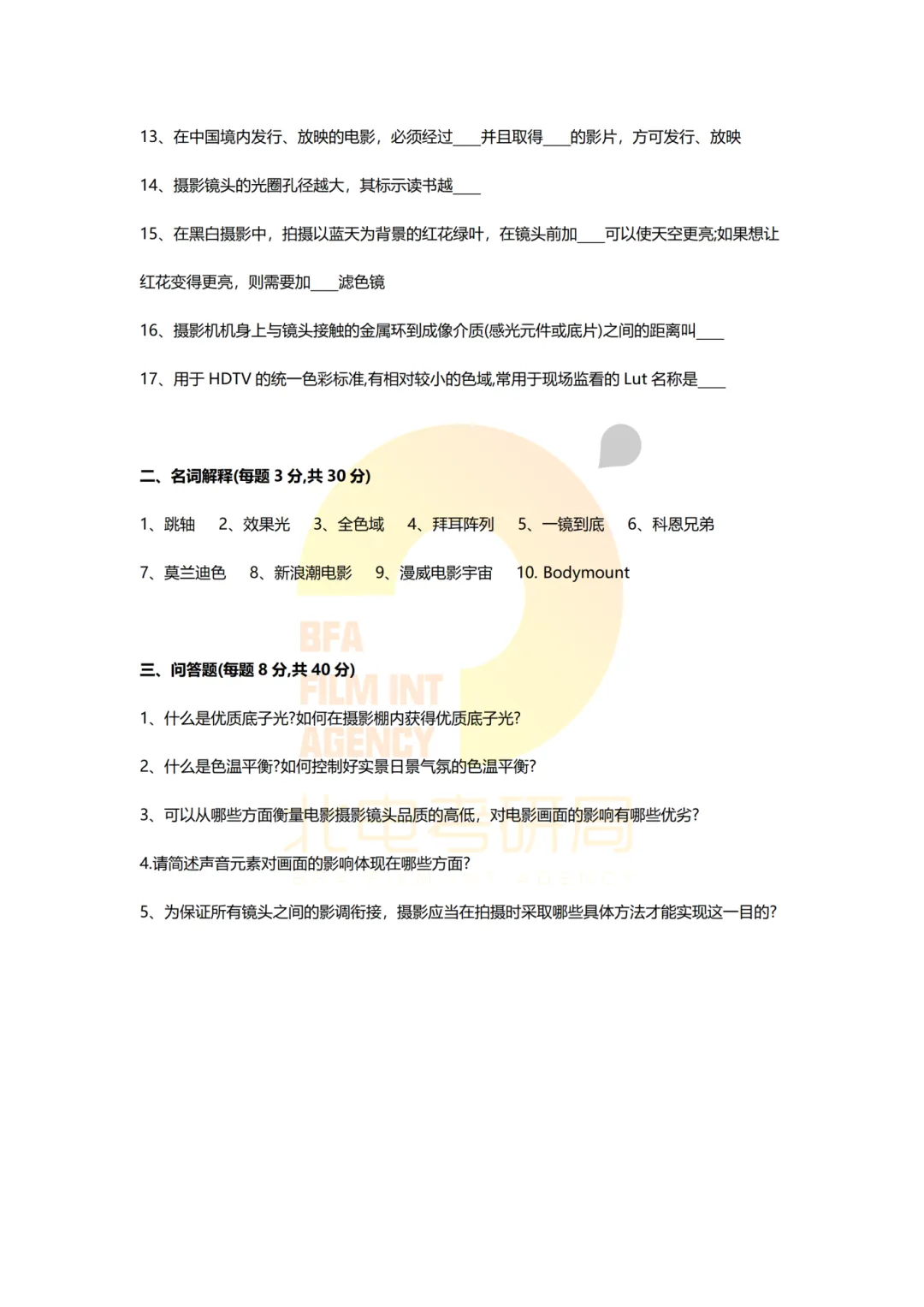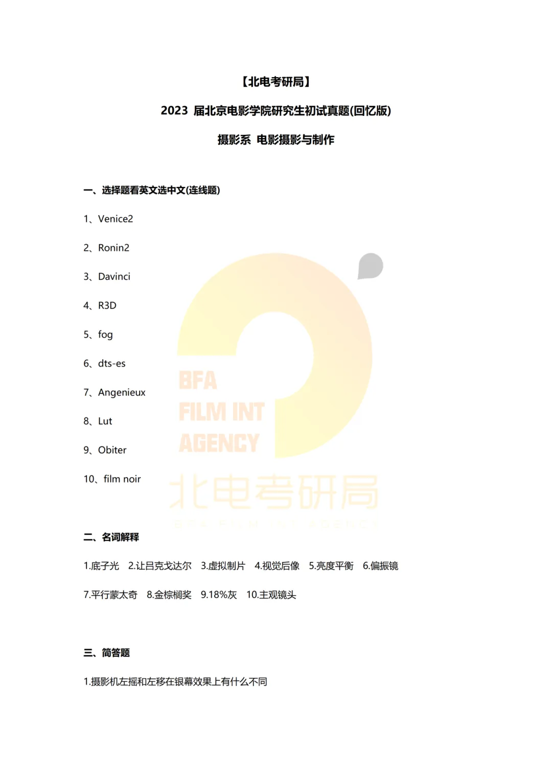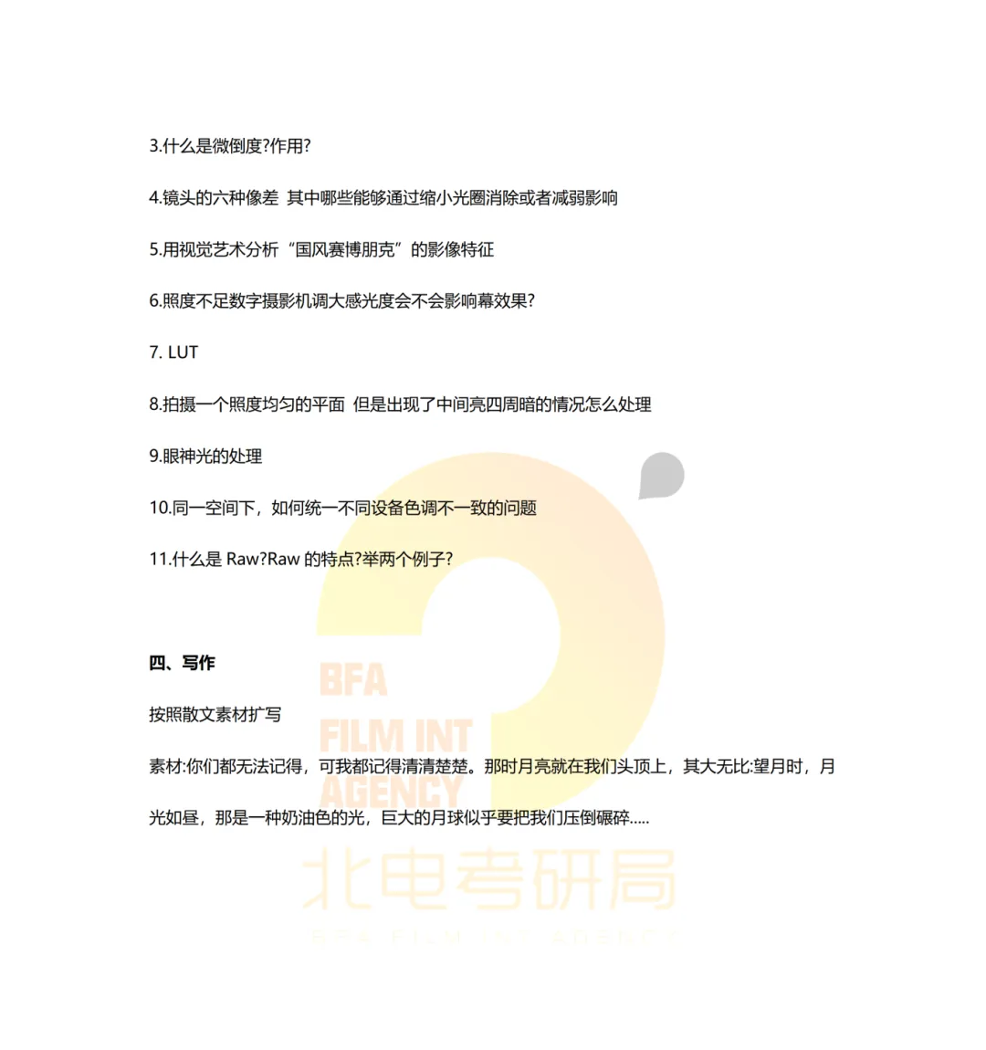 >真题档案 | 北电考研摄影系—电影摄影与制作近十一年真题汇总!