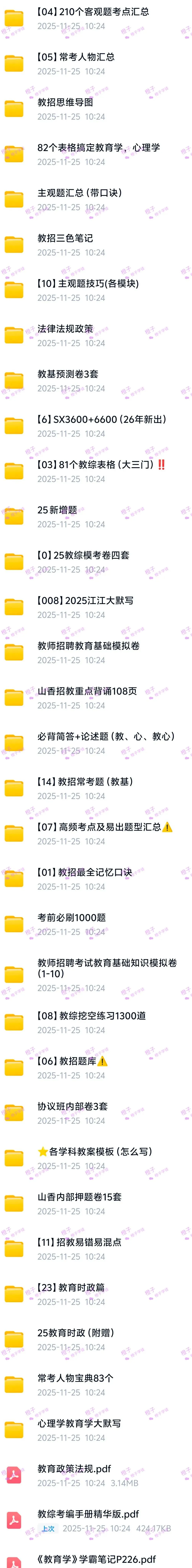 【教师招聘】25+2026教师编制考试资料:网课+电子版资料(讲义、教招学霸笔记、知识点速记、历年各地真题、必刷题、高频考点、模拟卷)
