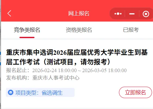 重庆市集中选调2026届应届优秀大学毕业生到基层工作考试报名入口正在测试!