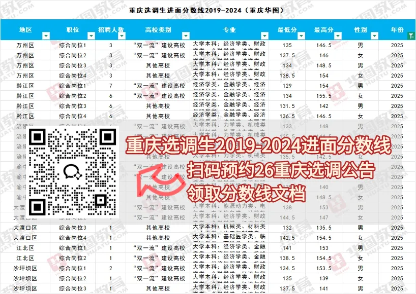 图图汇总了2019年至2024年重庆选调生进面分数线,供各位考生参考,扫码立即下载👇扫码预约2026重庆集中选调公告,发布后及时私信通知!培优计划4.0