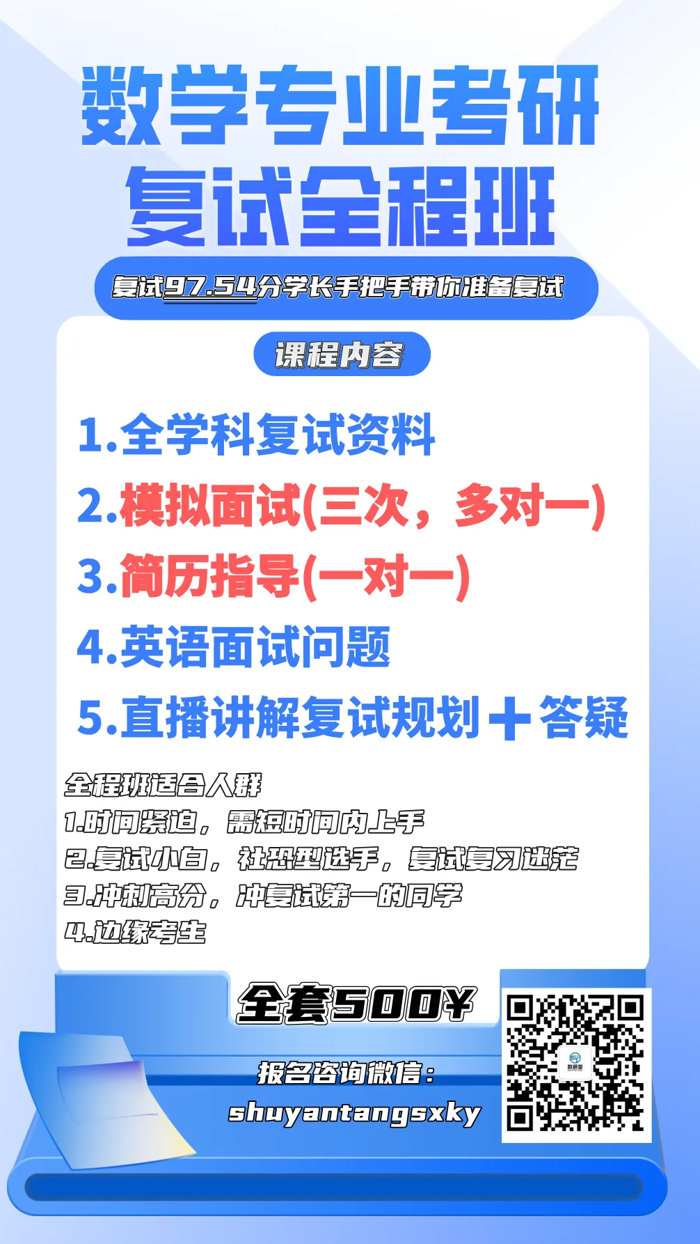 关于复试全程班的内容,大家可以看一下海报,任何问题都可以一起交流!