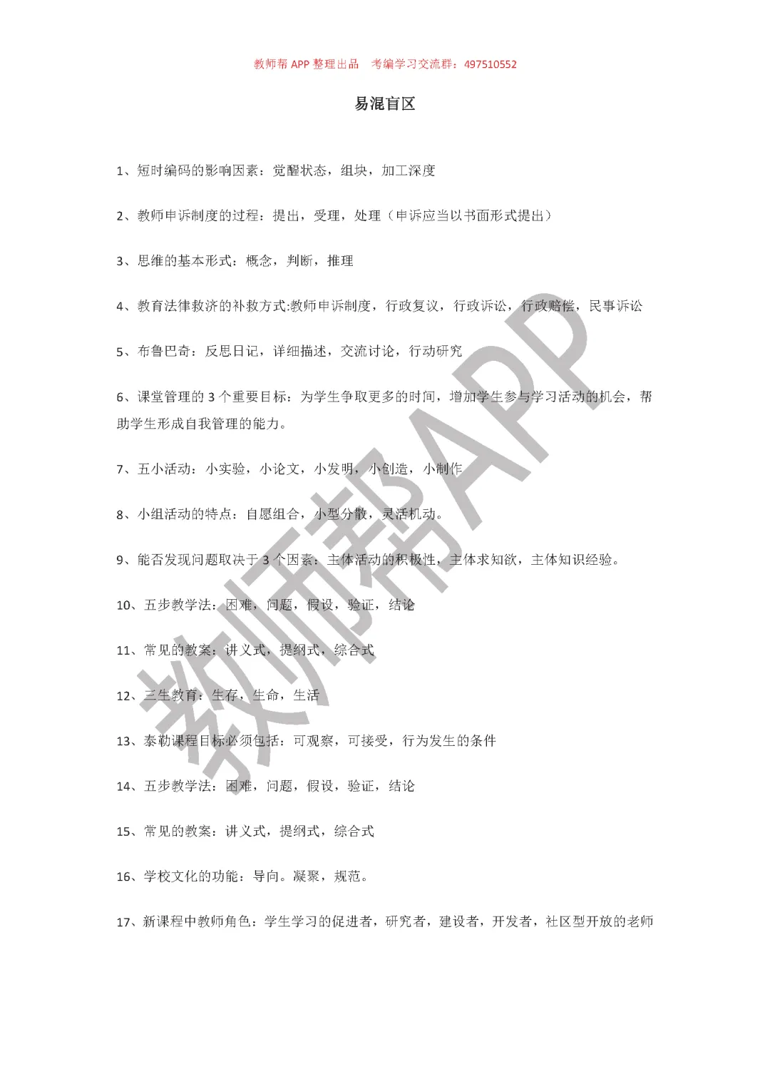各地具体招聘人数和报名时间你们就各自关注下当地的教师招聘的信息,别错过报名啦。陶子因为个人时间有限就没给你们整理教师招聘信息了,但是给你们整理了教招错题集资料,里面包括易错知识点和易错题集,可以帮助大家对于知识盲点能迅速get到,复习得更加全面。