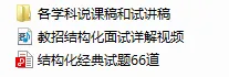 教师的面试是采取结构化面试和说课(试教)的形式结合的,所以某些学校的说课成绩占比较高,这份各学科说课稿能够为你提供一个方向,保证方向不会错,你的面试成绩也就不会低