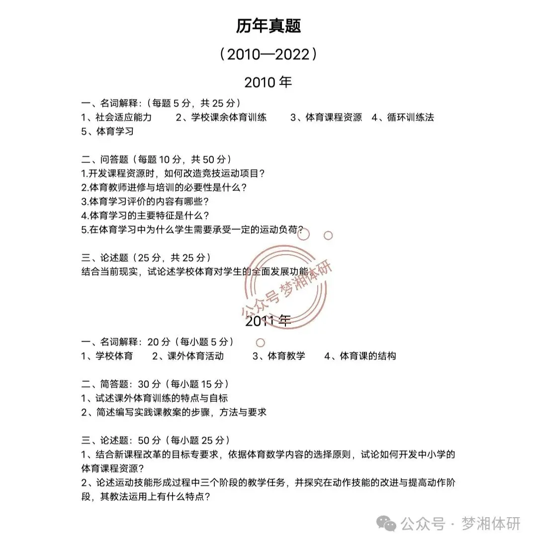 让各位师弟师妹久等啦!2027版湖南高校体育考研专业课资料已经出炉!一本好的专业课复习资料,不是让你丢掉书本,而是以书本为基础学习,再以复习资料为背诵,两者相辅相成,实现把专业课书本由薄看厚,再到由厚看薄的过程,最终把知识点内化于自己大脑里。专业课复习资料以教材书本为基础编制而成,提炼出每章节的重点内容及高频考点,每一章的思维导图供大家理解每章节中内容的逻辑关系,高效学习!重点知识点的比较,书本中有的知识点可以比较学习,尤其在运动生理学部分,比如运动对人体的反应和适应,考试时到底考察的是哪个知识点,这些则需要在基础复习阶段重点掌握,而不至于学习到了后期,把相似知识点弄混淆。有些高校不指定具体参考书目(如湖南师大等),还有的高校参考书本较多(如中南大学等)。所以到底该复习哪个版本、以哪个版本为重点复习方向,在资料中也会呈现出来。当复习某本书之外时,也要看看其他版本的知识点。尤其一些重要知识点,就使得我们必须也看一看其他版本的专业课书籍(尤其是运动生理学),学习最新版本的阐述与解释,补充本版本上没有的知识点,努力做到多拿分、少丢分!复习资料包含了湖南各高校体育考研的历年真题,真题是我们最为重要的复习方向,也是复习的方向标!不同院校的出题形式、内容不同,通过真题可以看出出题老师的出题风格和思路,也能看出哪些章节考察的频次较高,针对不同的题型该采用何种复习方法。根据上岸师兄师姐的经验总结,可以看出,真题的重要性毋庸置疑!由于有的学校更换参考书本版本时间不长,只有几年时间,亦或是原来书本科目直接替换其他专业课科目,因此可供参考的真题较少,很多同学复习摸不着头脑,因此特补充国内其他考察相关专业课书本的高校近几年真题作为参考学习!很多同学刚开始即使面对真题也摸不着头脑,不知从何处下笔,考察的是哪一个知识点,考察的知识点在书本的哪个位置。因此提供近几年真题答案解析供同学们参考,但这只是答题的一个方向和思路,因为授人“鱼”不如授人“渔”,答题时有自己的思路才更为重要,面对题目的具体分值才能活学活用,而不至于在考场上出现写了满满一大堆,但时间不够用的情况!2027版专业课资料,两本专业课科目的专业高校定价为299元一套(如湖南农大、湖南科大等),三本专业课科目的专业高校定价为329元一套(如湖南师大、湖南工大等)2.默认快递为中通快递,湖南湖北江浙沪等中东部地区两天内可到货,全国大部分地区都可包邮(偏远地区除外)。所有专业课资料均为纸质版书籍,各位同学确认专业后,一旦发货概不退换货,所以希望各位同学确定好专业、思考清楚后再下单,减少不必要的麻烦。湖南师范大学、湖南农业大学、湖南科技大学、湖南工业大学、吉首大学、湖南工商大学、湖南理工大学、衡阳师范学院等湖南省内高校。请各位同学认准购买途径,师兄微信(azqdppt)或梦湘体研平台微店,其余途径均为假冒和盗版,保留追究权利。随着26届的师弟师妹们即将参加复试,意味着26届考研也快要结束,27届考研也正式开始了!我们的专业课课程辅导也将在下周拉开帷幕,只为更好地帮助27届潇湘大地的体育考研学子一战成硕!