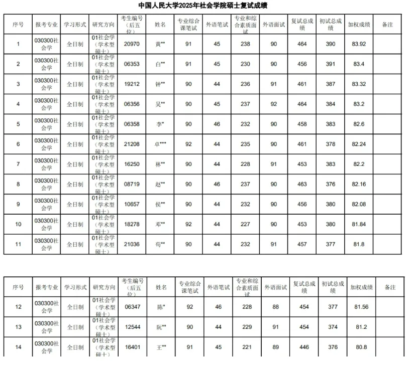 2026中国人民大学社会学、社会政策、人口学、老年学、人类学考研初试已经结束。让我先回顾一下2025年这五个专业的招生情况吧~2025年社会学、人类学、人口学和老年学四个专业同卷,均为学术型硕士,初试考察社会理论和社会研究方法,其中社会学和人类学专业属于社会学院,人口学和老年学属于人口与健康学院。社会政策是专业型硕士,初试考察社会研究方法和社会政策原理,公共课考察英语二。2025年人口学、老年学专业复试分数线340分。人口学复试5人,录取3人;老年学4人进面全部录取,最低分340多分。2025年社会学、人类学专业复试分数线365分。社会学专业复试26进14人,少干2人,人类学4进3人。以下是社会学和人类学的拟录取名单。2025年7月11日,中国人民大学社会学院发布了一则公告,社会政策专业硕士的第四科目考试改为“845社会理论”。这也意味着社会学、社会政策、人口学、老年学、人类学五个专业初试同卷+合卷。我们的人大社会学考研全程班也紧跟这一考情变化,考虑到初试题目为选做模式,为人大全程班学员提供了人大社会政策考研真题和社会政策专业笔记,积极应对考情变化。目前针对2027年备考人大社会学的同学,我们也准备了独家原创全套资料包,2027新版本的资料包增加了2024年和2025年的考研真题答案、社会政策专业笔记,并大幅度更新了各科笔记。2026年中国人民大学社会学(社会政策)考研真题依旧延续选做模式,必做的题量不变、分值不变,但题目数量更多、可选做范围更广。资料为预售形式!全部资料将分批次寄出,最早3月22日寄出,最晚批次将不超过8月1日。资料更新完毕后,我们将同步更新资料截图至公众号!